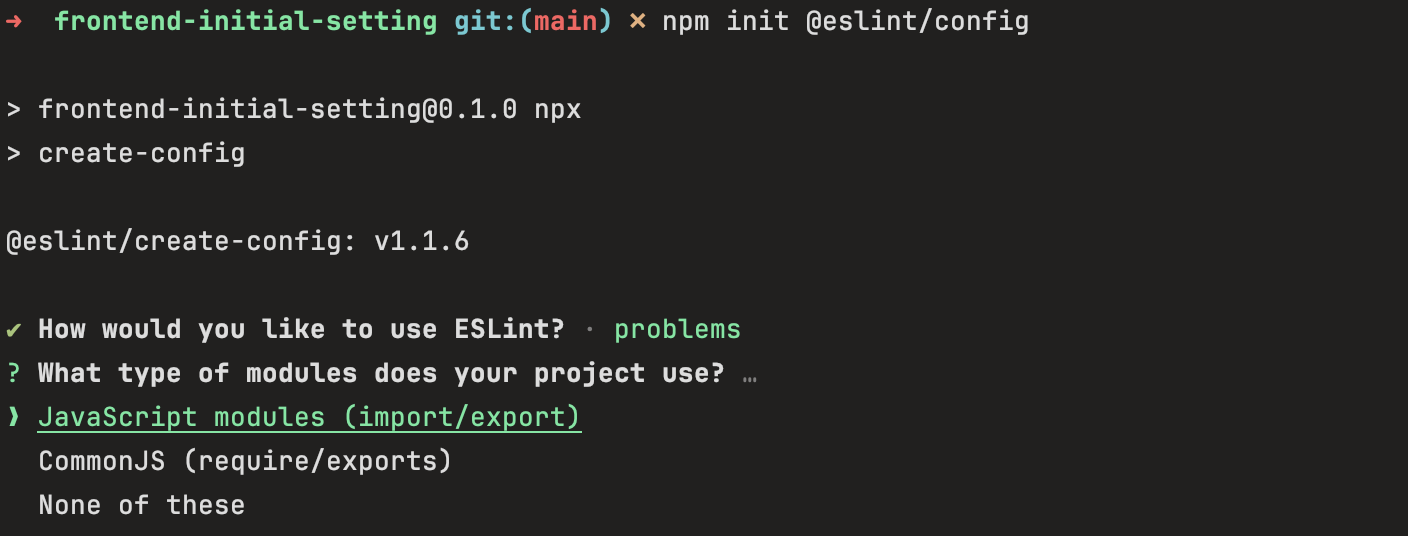 npm init @eslint/config