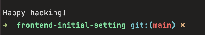 그리고 이것저것 자동으로 설치가 되고 💫해피 해킹!💫이 뜨면 프로젝트가 정상적으로 생성되었음을 확인할 수 있습니다.