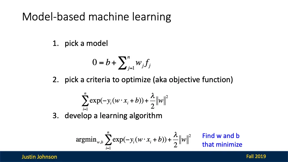 - 모델 선택: 적절한 수학적 구조로 데이터 표현