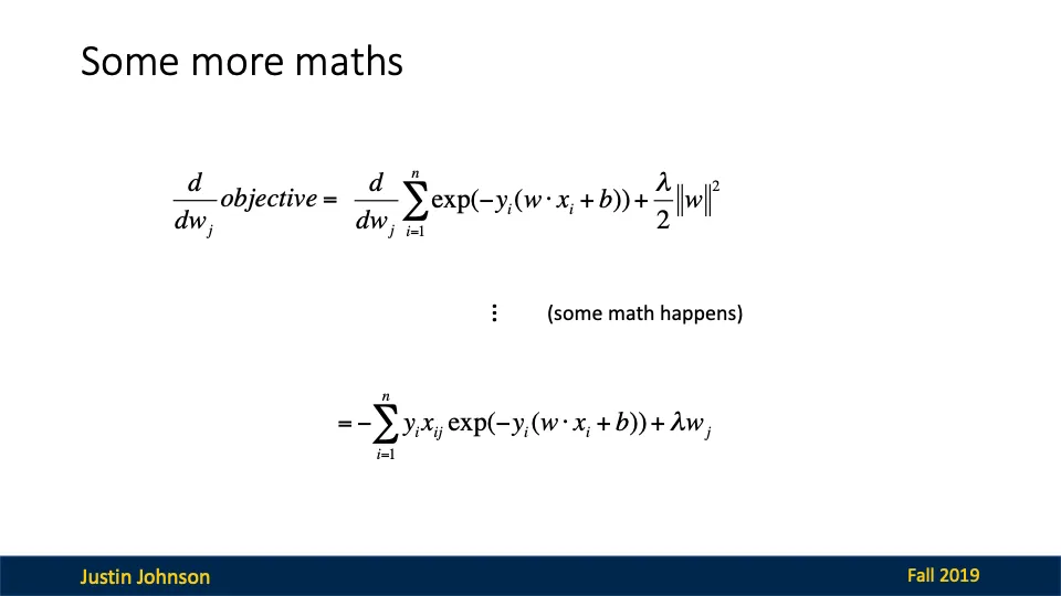 목적 함수의 기울기 계산은 각 가중치인 w에 대해 미분을 하면 된다.