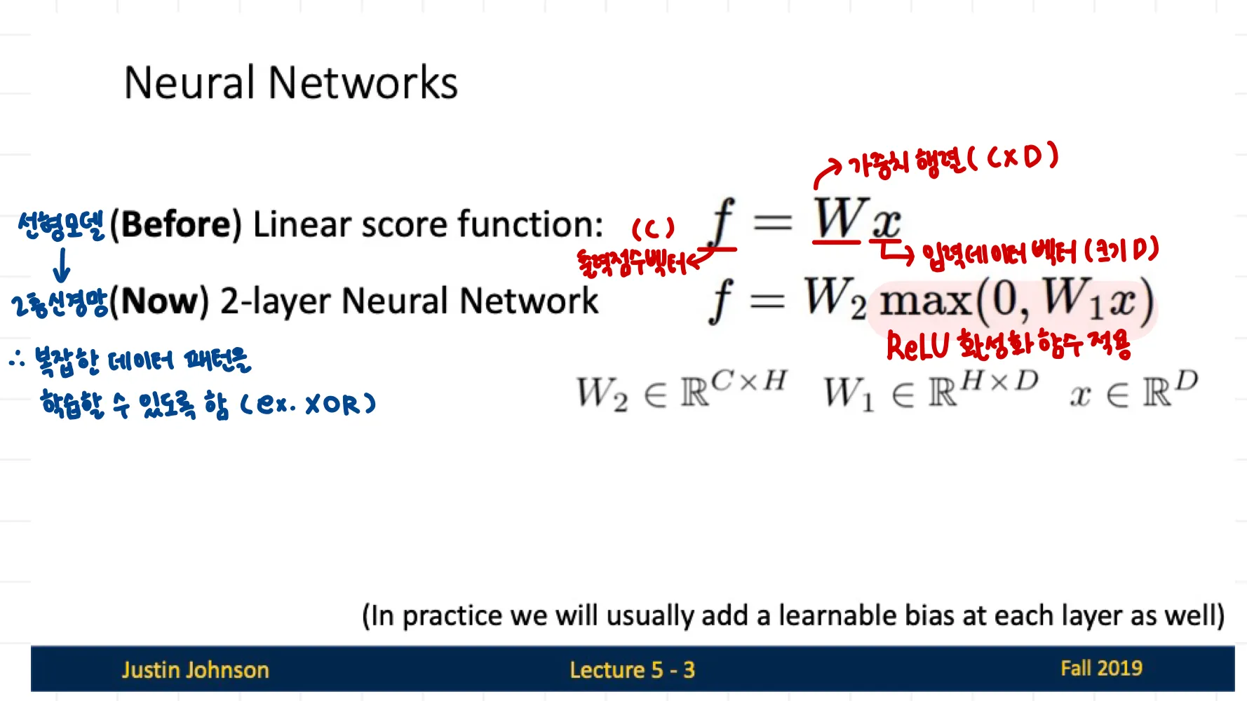 자세히 보면 여러 계층에서 따로 따로 연산했던 것을 하나의 식으로 정리하는 것을 확인하실 수 있다~