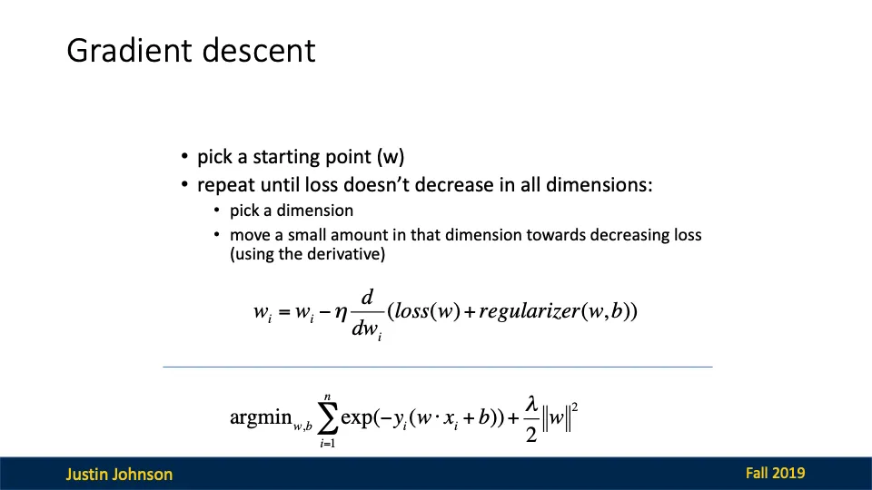 - 기울기를 따라 가중치를 조금씩 업데이트