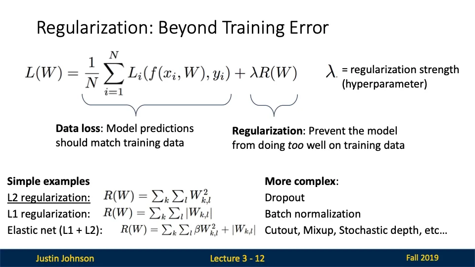 즉, 훈련 데이터만 고려하는 학습은 오버피팅을 유발할 가능성이 높으므로 정규화를 통해 모델의 복잡성을 제어함으로써 테스트 데이터에서도 좋은 성능을 발휘하도록 만든다!!!!