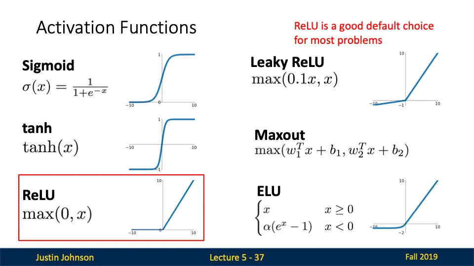 여러가지 활성화 함수 중에 ReLU를 가장 많이 쓴다!