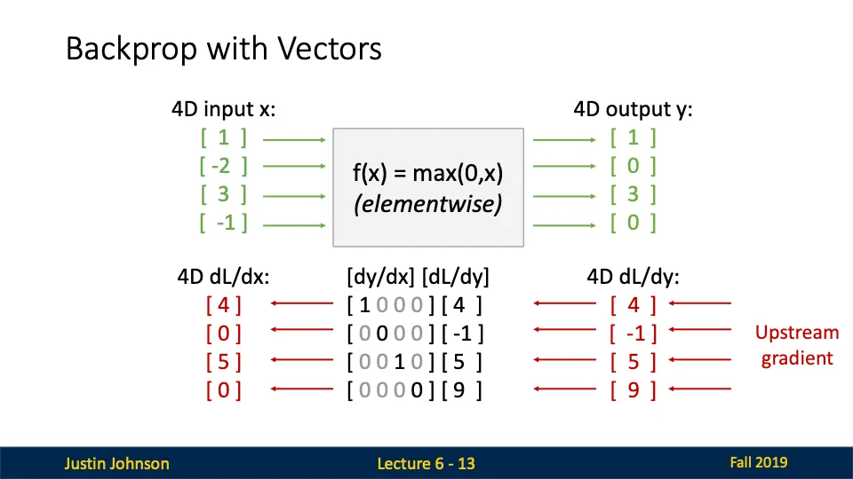 - ReLU를 미분해서 로컬 그래디언트 행렬을 만들어주어요