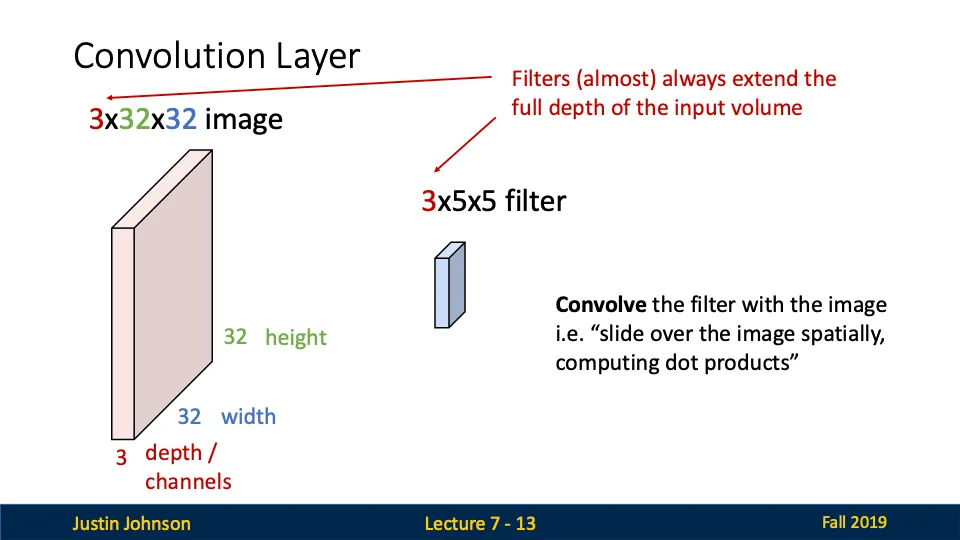 - 합성곱 계층에서 출력의 각 픽셀은 입력 이미지에서 특정 영역(Receptive Field)에 의해 결정됨