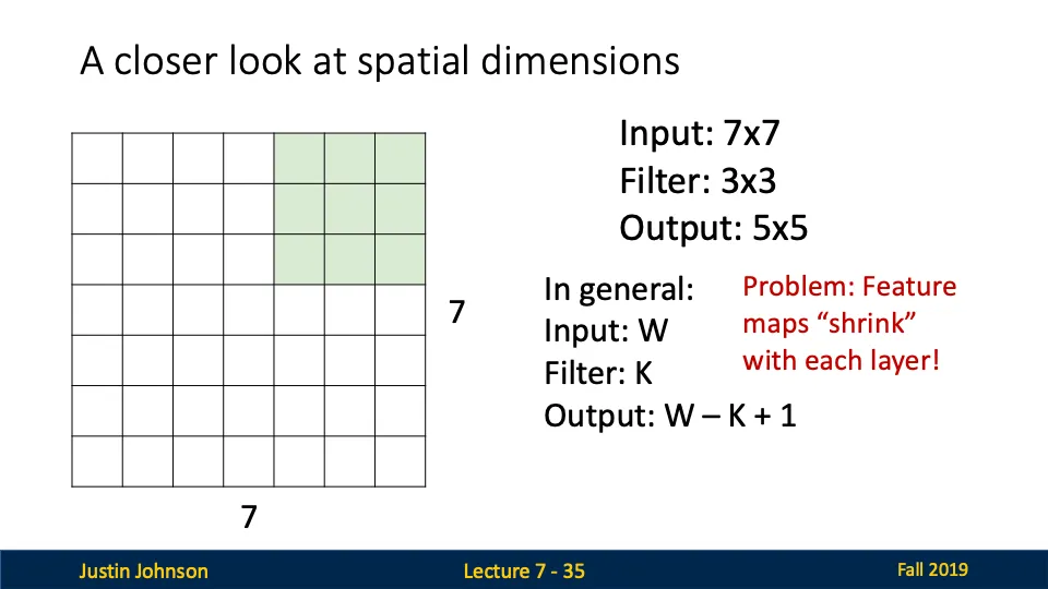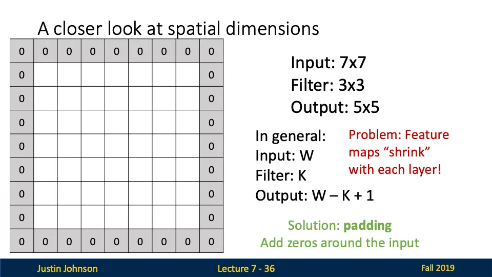 - 입력 이미지의 가장자리에 0을 추가하여 출력 크기가 줄어드는 것을 방지한다.